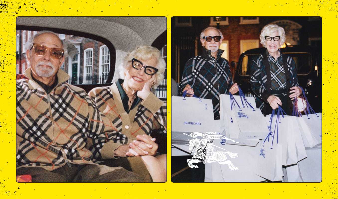 In adjacent spaces, Burberry is leaning into the elegance of age with portraits that treat wrinkles like couture. Even jewelry designer Daniela Salcedo’s GrandMADS collection makes grandmothers the icons Gen Z didn’t know they needed.
