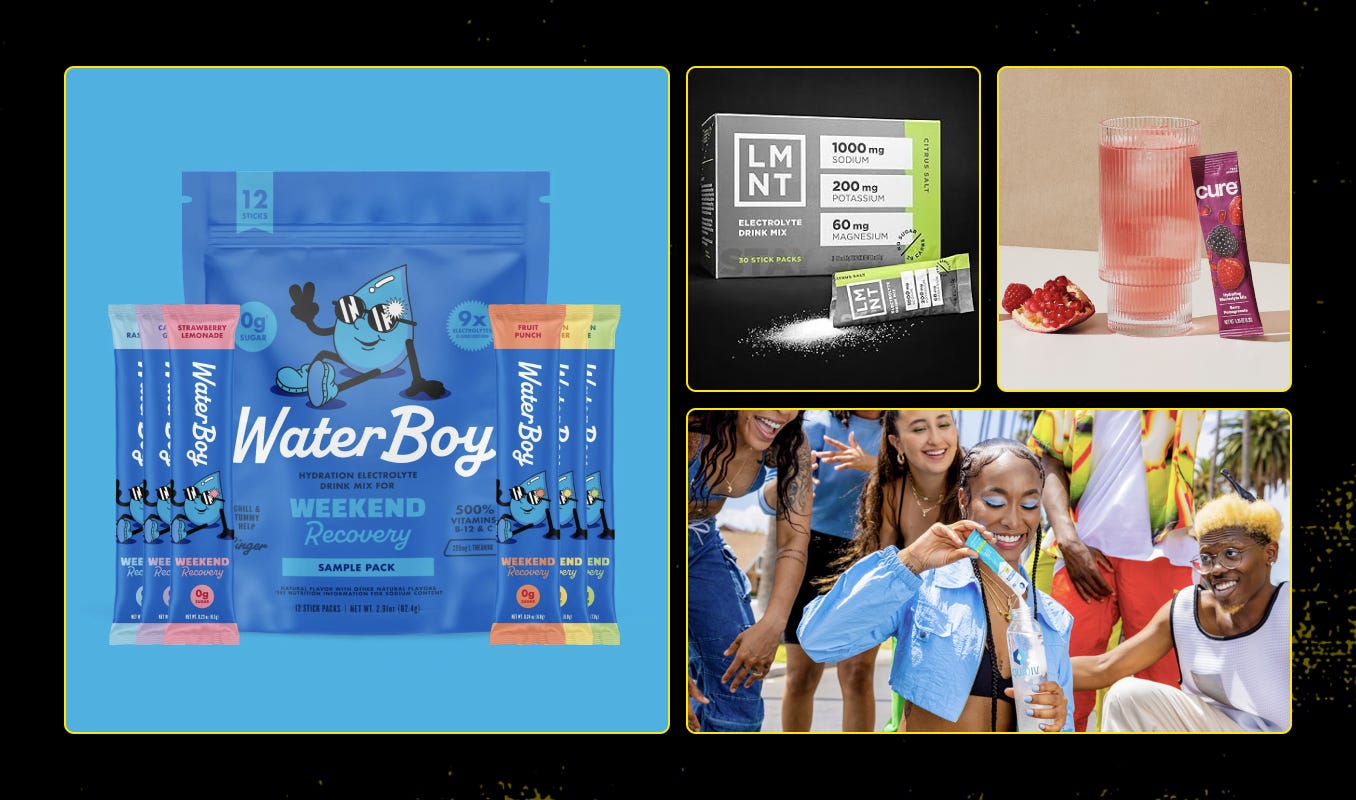 Electrolytes are also getting a glow up. Once confined to the sports aisle or hangover kits, hydration products have crossed into lifestyle and wellness with zero shame and full flavour. Waterboy is riding the TikTok wave with meme-powered recovery messaging (“hangovers are optional”), while LMNT has carved out a cult following among keto heads, CrossFit dads, and biohackers with its high-sodium, zero-sugar gospel.