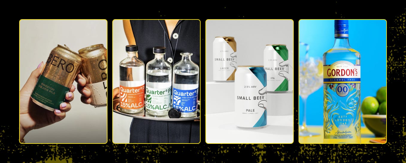 The market has followed these changing habits, with brands like BERO (alcohol-free beer), Quarter Proof (mid-strength spirits), and Small Beer (mid-strength beer) carving out “damp lifestyle” shelves. Moët Hennessy is even hedging with non-alcoholic sparkling wine while Gordon’s latest “Mix It Up” campaign shows the same night with gin and Gordon’s 0.0%.